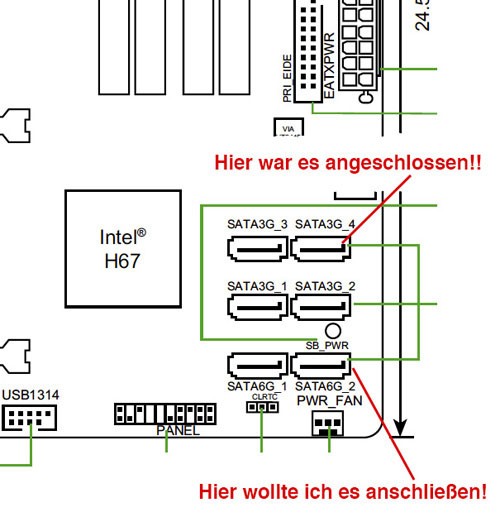 Schau mal bitte ob du die richtig angeschlossen hast SATA 3 6/Gbs Schnittstelle !