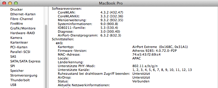 • Benutzt Du auch die selbe Verschlüsselung unter Mac und Win (da gehe ich einfach mal von aus ;) ) aber auch den selben Kanal ? nicht das da ein anderes Wlan in der nähe auch auf dem Kanal Sendet und dein Wlan stört.