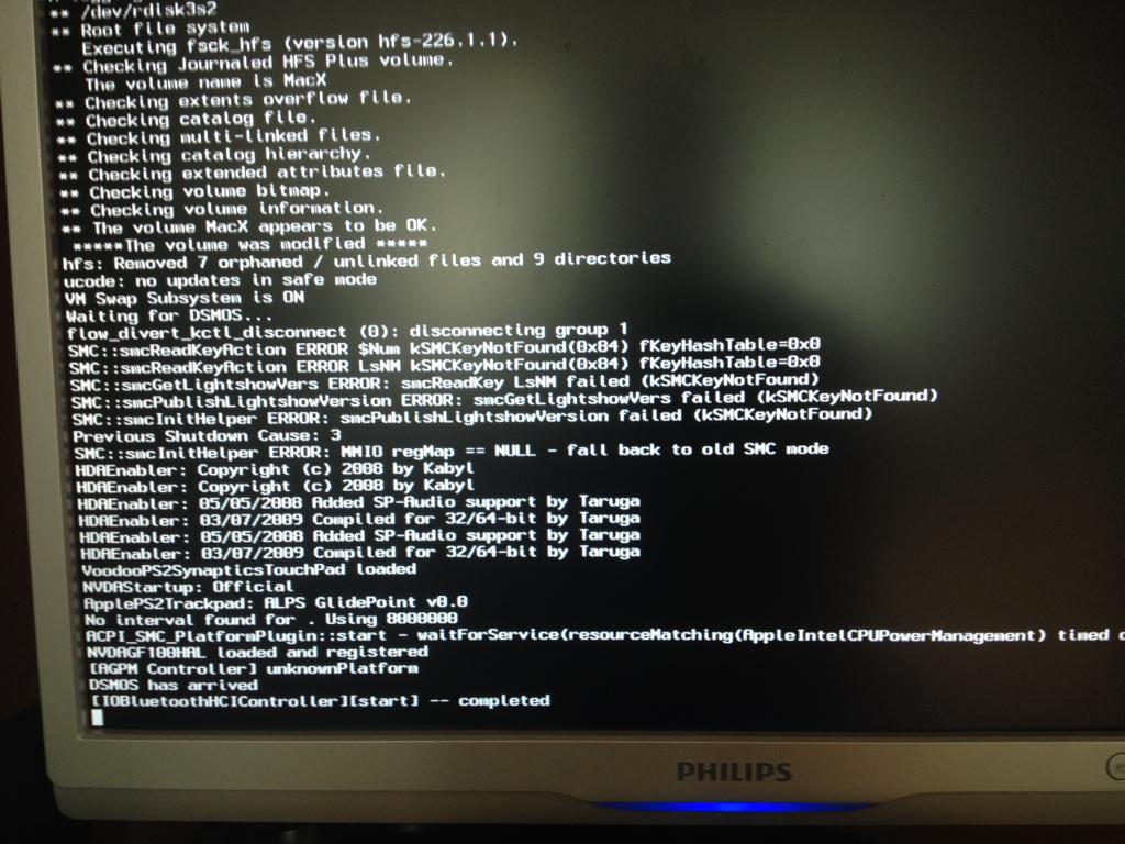 Wenn ich im Chamäleon Bootmenue via Externe Festplatte die gespiegelt Version boote, fährt er ganz hoch.