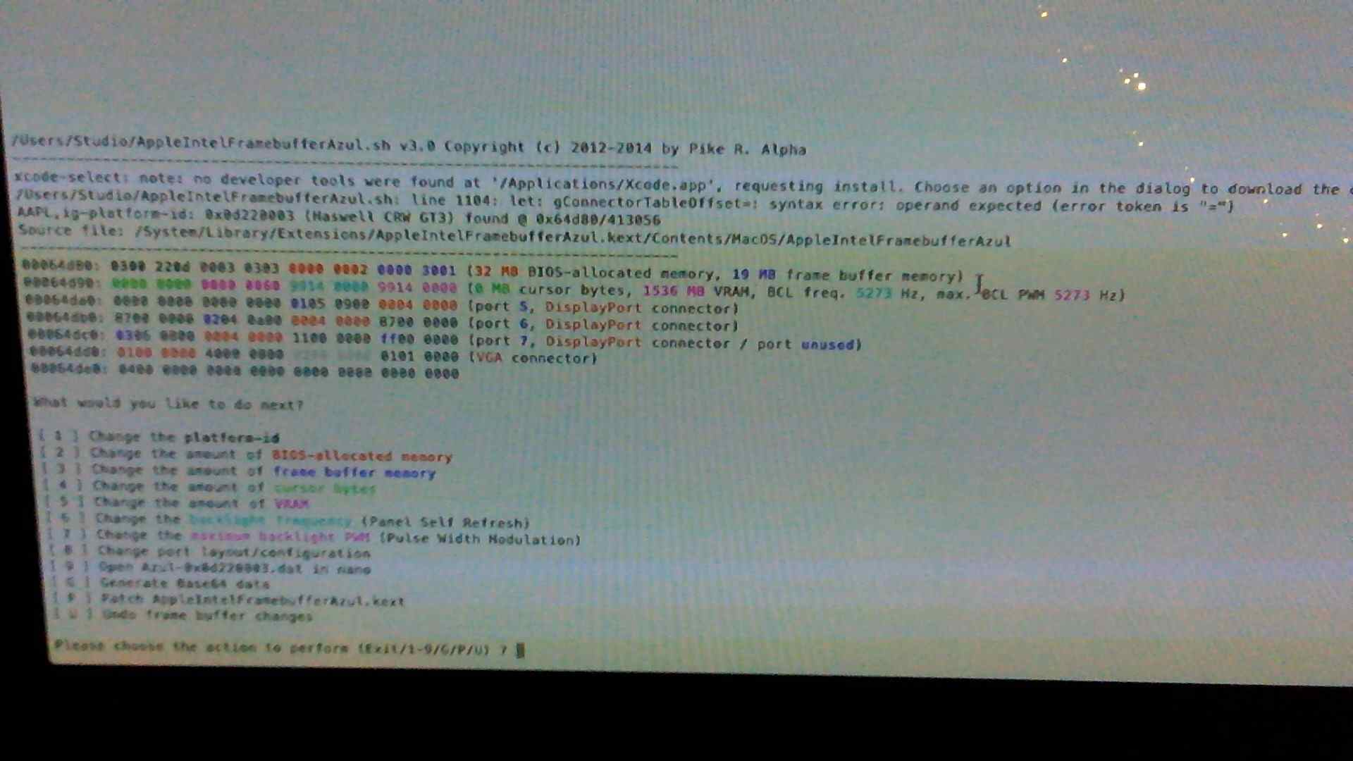 Das Script dient dazu den AppleTreiber zu patchen so, dass er zu Deiner Grafik passt. Schau die mal die Ausgabe genau an und passe die Einstellungen entsprechend Deiner Gegebenheiten an.