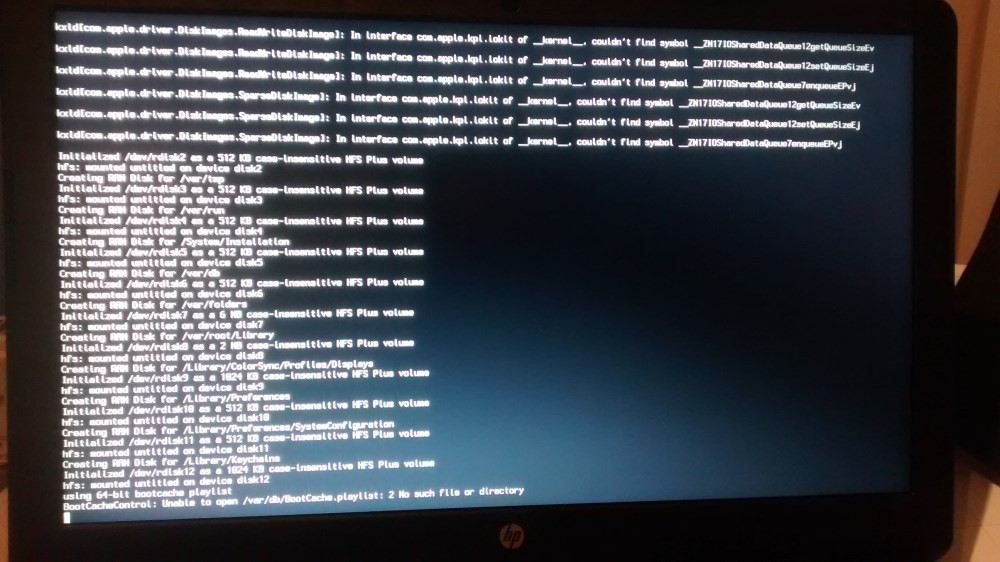 Ohne Veränderung des Sticks lädt er bis zu Ende (Read HFS+ ...), dann ist auch schon Ende, schwarzes Bild, neustart.