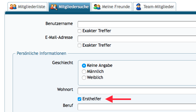 Im großen und ganzen wie eine Vermittlungsbörse zwischen Dir als Hilfesuchenden und einem freiwilligen Supporter. Das Forum bietet Dir die technische Plattform um Kontakt zu einem anderen User aufzunehmen der sich selbst als versiert genug einstuft um anderen auch vor Ort zu helfen. Um einen Supporter in Deiner Nähe zu kontaktieren gehst Du einfach auf die Suche indem Du oben im Menu auf den Punkt Mitglieder klickst und dann auf den Reiter Mitgliedersuche wechselst. Dort angekommen setzt Du bei den Suchkriterien einfach einen Haken bei Ersthelfer.