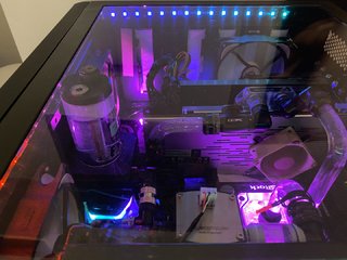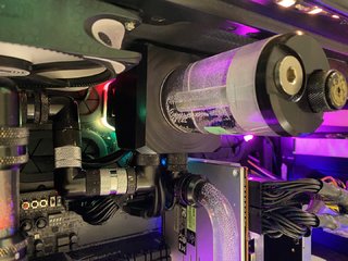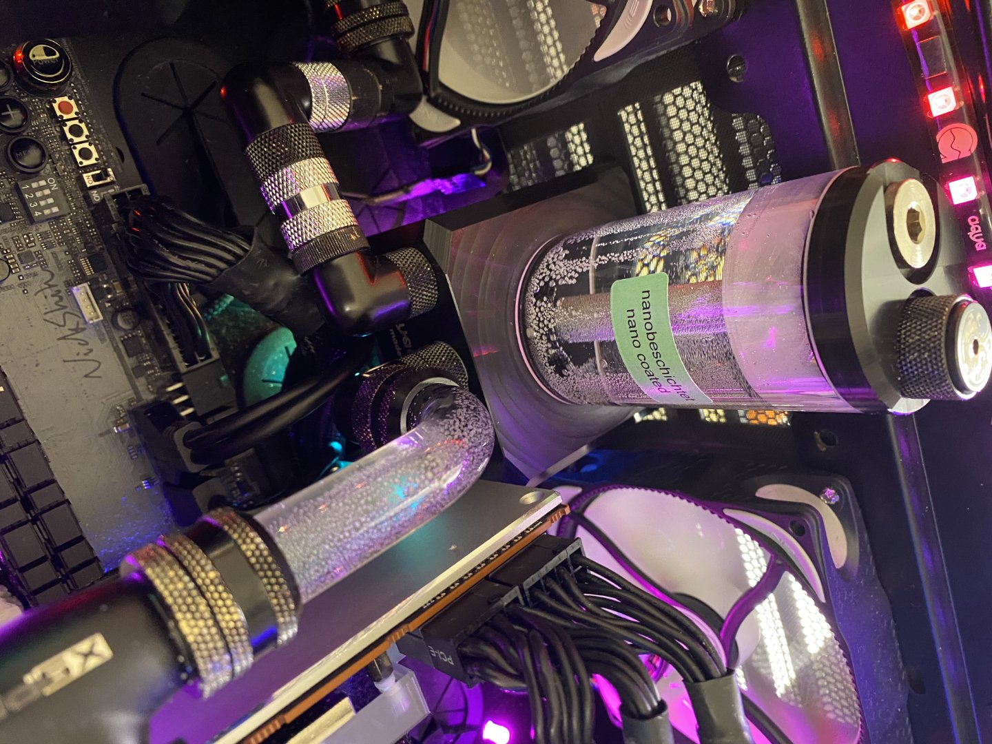 Im Wasserkreislauf wird eine CPU und eine Radeon VII gekühlt.