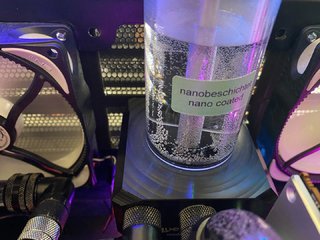 Unter dem aqualis tut eine aquacomputer D5 NEXT RGB ihren Dienst. Auf voller Leistung schafft sie es bis auf 225 l/min Wasserdurchfluss. Derzeit läuft sie auf 3% und fördert 75 l/min.