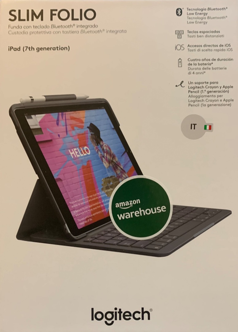 Im Amazon Warehouse Deal habe ich mir für ganze 12 € ein Logitech Slim Folio gekauft. Produkt war wie neu (unbenutzt) und kam in originaler Verpackung hier an.