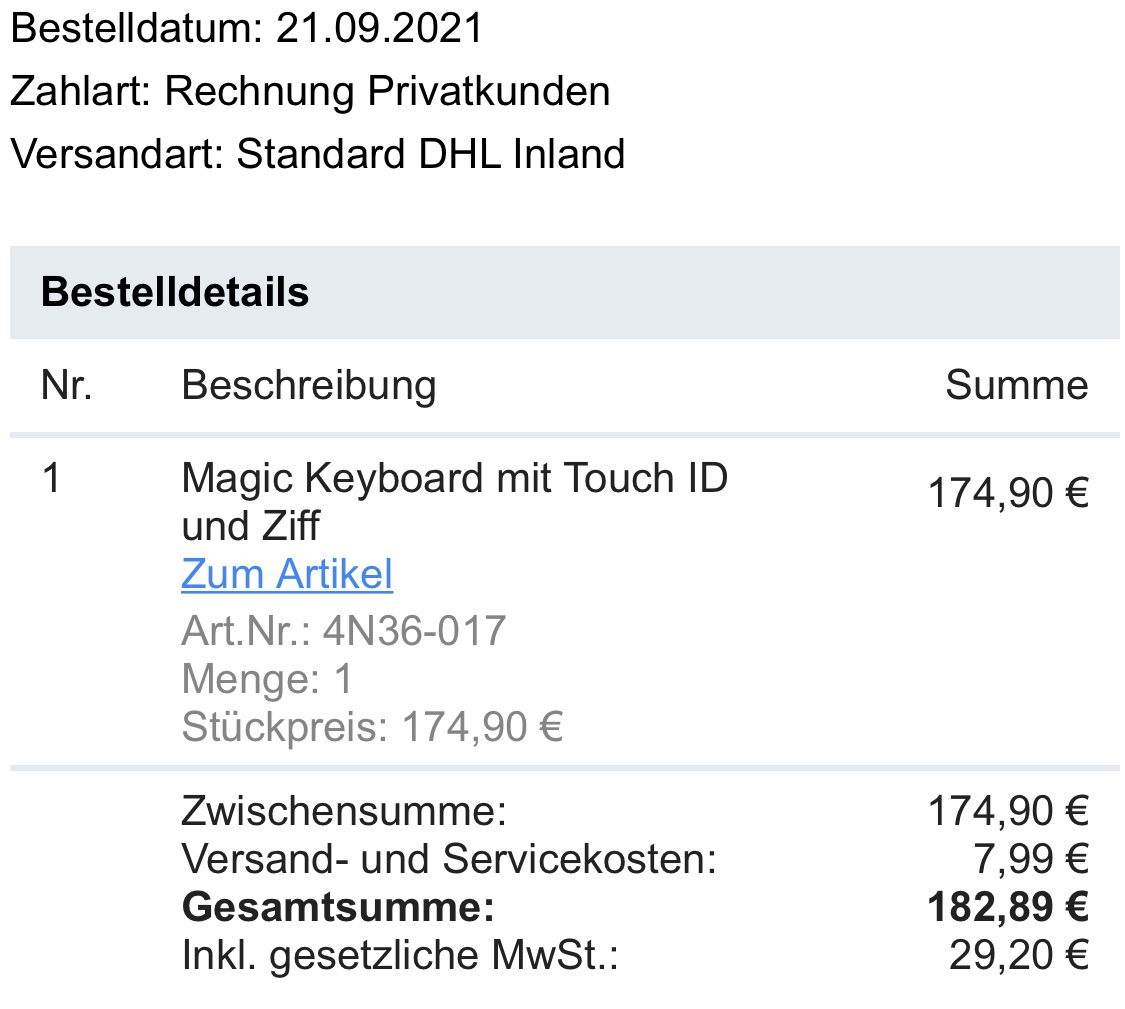 Die neue Apple Tastatur mit Touch ID, um mein i9 16 Zoll MacBook Pro auch im geschlossenen Zustand mit Touch ID betreiben zu können.