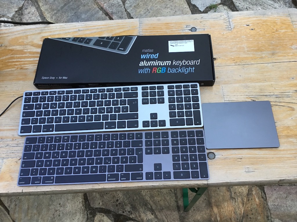 Die Tastatur ist etwas höher als die Apple Tastatur, das Schreibgefühl ist trotzdem gut. Die Tastatur hat ein lauteres Anschlaggeräusch.