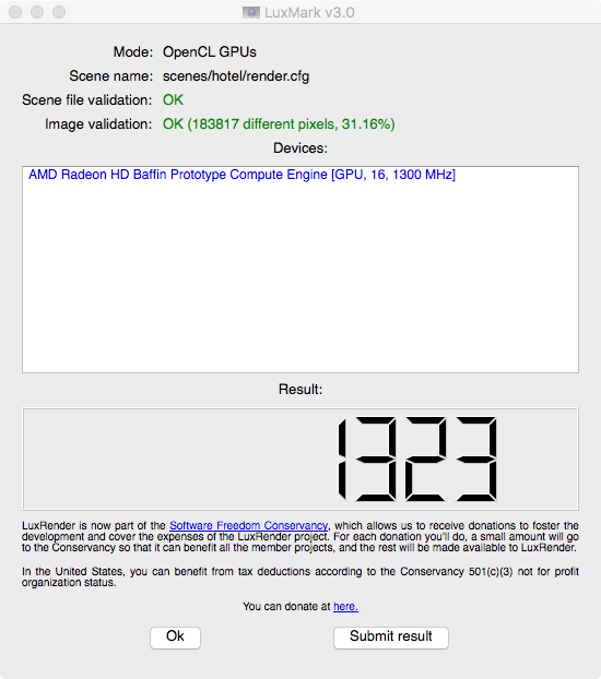 wenn ich Luxmark NICHT in "Programme" laufen lasse, sondern von einer anderen internen SSD, dann gibt er nur 1/3 der Performance an, das Programm scheint echt buggy zu sein.