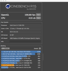Wie man sehen kann, die selbe Graka schafft in CINEBENCH R15: