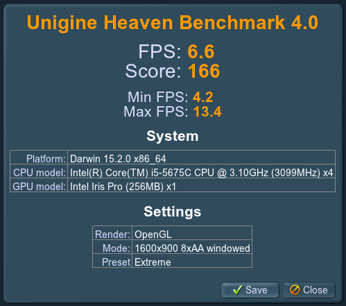 Hardware: MacBook Pro 13" Retina Erly 2015/ Intel Core i5-5257U i5-5287U/ Intel Iris Pro 6100/ 8GB RAM