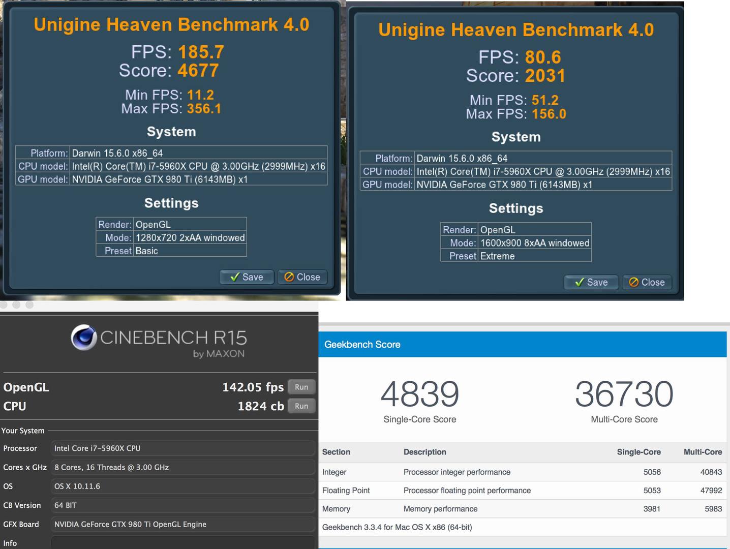 • Ich werkle gerade an einem X99 System (OS X 10.11.6, 5930x, 16 GB, 980GTi, 850 Eva, es wird allerdings noch eine M2 Platte hinzukommen und der Speicher wird auf 32GB ausgebaut).