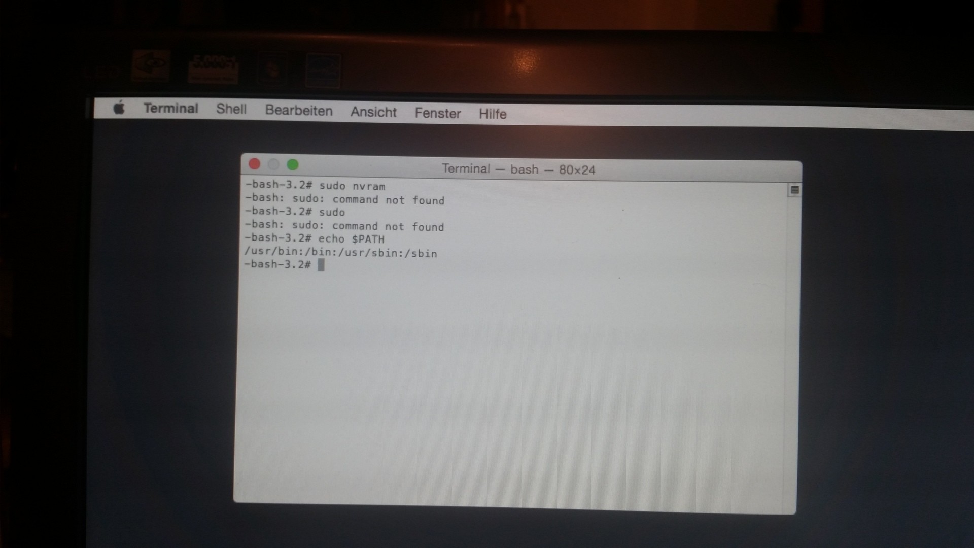 Wenn ihr aus der Recovery oder von InstallStick aus ins Terminal geht, habt ihr automatisch SuperUser-Rechte, dh. "sudo" wird dann nicht benötigt bzw. es gibt die Fehlermeldung, dass sudo nicht bekannt sei.