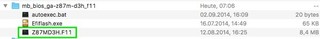 Wenn man diese entpackt, wird ein Ordner mit dem Namen "mb_bios_NameDesBoards.Versionsnummer"angelegt und der Inhalt dort abgelegt.