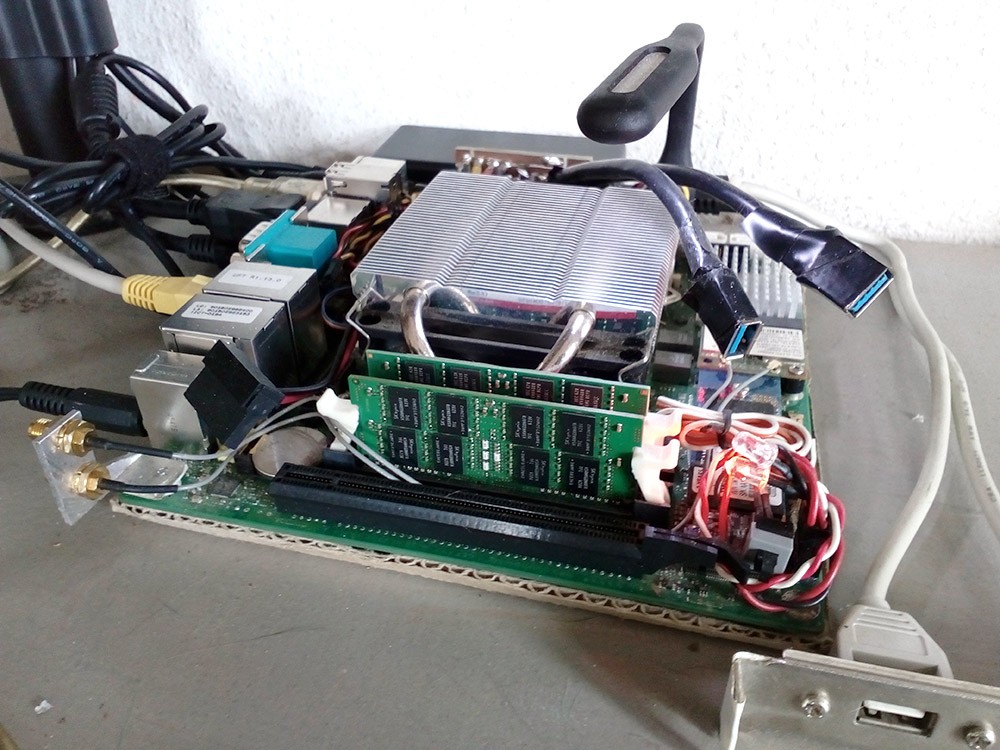die stromversorgung der boards: man kann sie mit einem "normalen" atx-netzteil füttern, wie alle mainboards, aber auch direkt mit 12V - die notwendigen spannungsregler sind onboard. es gibt keine 12V-anschlussbuchse, sondern auch die 12V-versorgung läuft über den atx-stromanschluss, das board erkennt, ob ein standard-netzteil oder ein 12V-kabeladapter (meine adapter hab ich aus abgebissenen anschlüssen von kaputten netzteilen gebaut, eine quasi-anleitung mit benötigter belegung findet sich im manual) am atx-anschluss steckt. so erübrigt sich sogar die picoPSU, wenn man so ein board als möglichst winzigen stromsparenden rechner aufbauen möchte. und das mit der stromsparerei können die kleinen wirklich extrem gut.