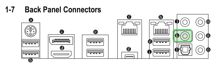 • K ist Lineout und der Kopfhörer Eingang dieser ist bei O. Auf dem Board ist das vom Gehäuse auch vorne angeschlossen Dort hängt aber nichts dran da hatte ich noch nie was dran hängen.