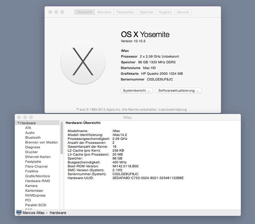 Ach ja, inzwischen bin ich wieder bei El Capitan, da es unter Yosemite keinerlei Erleichterungen zu spüren gab - also unter Strich das gleiche gut bzw. schlecht läuft.