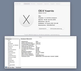So, ich habe inzwischen auf einer Platte EC und auf einer anderen Yosemite installieren können. Der HP steht wieder an seinem angestammten Platz und wird nun im Dual Boot Modus für den Alltag (Arbeit) benutzt. Wie @ralf. vorgeschlagen hatte, würde ich bei Gelegenheit noch den Weg dorthin zusammenfassen und evtl. die Dateien zur Verfügung stellen. Es gibt noch diverse Dinge die nicht oder nicht akkurat laufen, Sound, manchmal hackt und hängt es etwas und das Problem mit der zweiten Graka muss ich noch angehen. Eine USB3 PCIe Karte muss ich noch zum laufen kriegen und in meinem Systembericht steht z. B. bei meiner Graka als Steckplatz Ethernet und bei der USB3 Karte steht Firewire. Da wäre es interessant ob dies Auswirkungen hat und ob und wo ich das ändern sollte. Mit dem Eintragen diverser Hardwareinformationen in die config.plist will ich mich beschäftigen usw. da wäre es nett wenn jemand von euch den ein oder anderen Link hat.