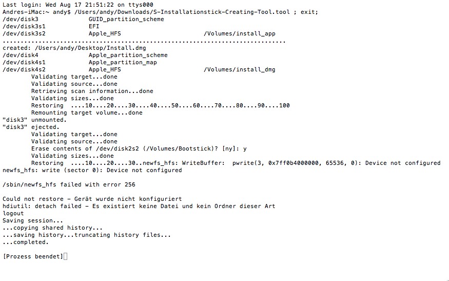 1. "disk2" unmounted."disk2" ejected.rm: /Volumes/tmp/BaseSystem.dmg: No such file or directorylogout[Prozess beendet]