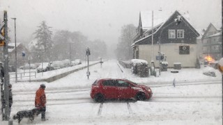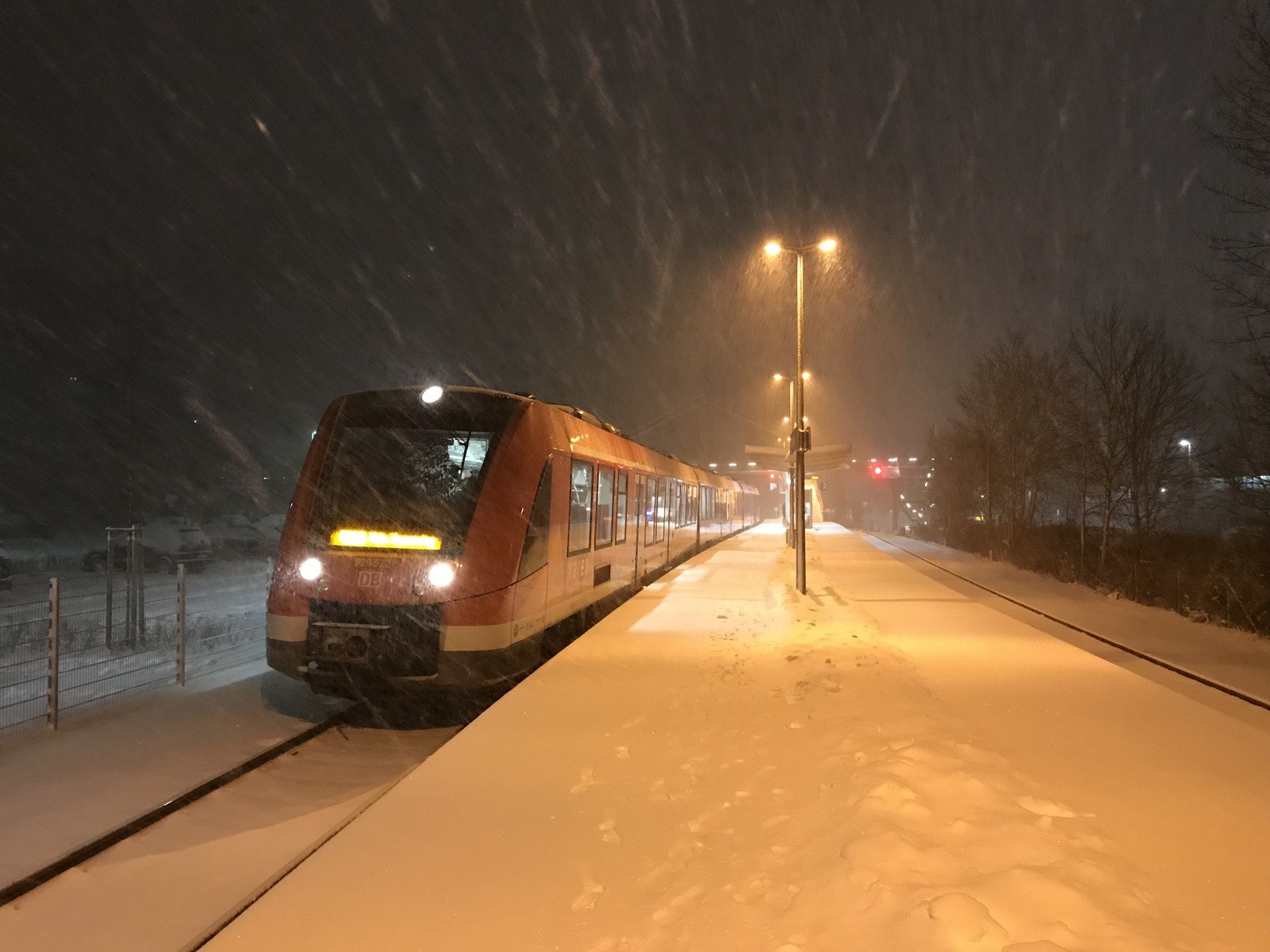 Wie zum Beispiel hier in Meinerzhagen, als es abends während der letzten Runde ziemlich stark geschneit hat, konnte ich es mir nicht entgehen lassen, unseren Zug in der frisch zugeschneiten Landschaft zu fotografieren.