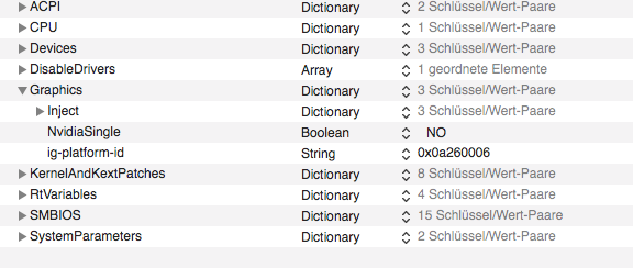 Ich war zu schnell, habe Deine korrigierte config.plist selbst noch mal "korrigiert" und 0x0a260006 eingetragen. Damit fährt der Rechner nicht hoch.
