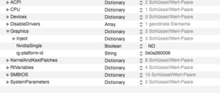 Nach meinen Aufzeichnungen aus obigem Link habe ich dann FakePCIID.kext installiert (erst nur einzelne Kext, inzwischen alle). Auch nach Neustart keine Besserung.