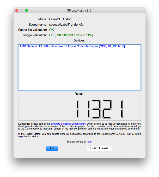 Hab mal wegen der ganzen Benchmarks im FCP Thema auch LuxMark drüber laufen lassen. Wie sehen da eure Ergebnisse bei der RX 480 aus?