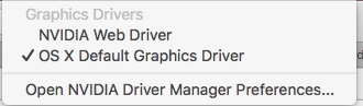 Hab den neusten Nvidia webdriver installiert und den Nvidia Web Driver als Default eingestellt. Allerdings springt der nach dem Neustart immer wieder auf den OS X Default Graphics Driver um. (Siehe Bild)