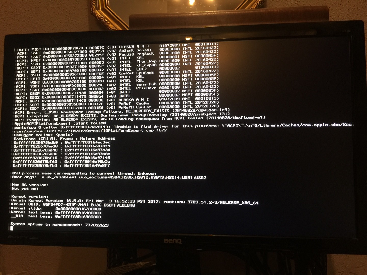Bei der Definition als MacPro5,1 stört meist der AppleTyMCEDriver.kext, der immer die zum MacPro gehörenden ECC-Arbeitsspeicher sucht, die normale Hackintoshes nicht haben und dort für Systemabstürze sorgt. Das kann man mit einem Clover-Eintrag deaktivieren oder den Kext bei jedem Update löschen, aber mehr Sinn macht zur Zeit eine Definition als iMac 14,2. Läuft meist problemlos und lässt sich sowohl mit dazu gehörenden Nvidia-Grafik-Karten als auch mit solchen von ATI bestücken.. -