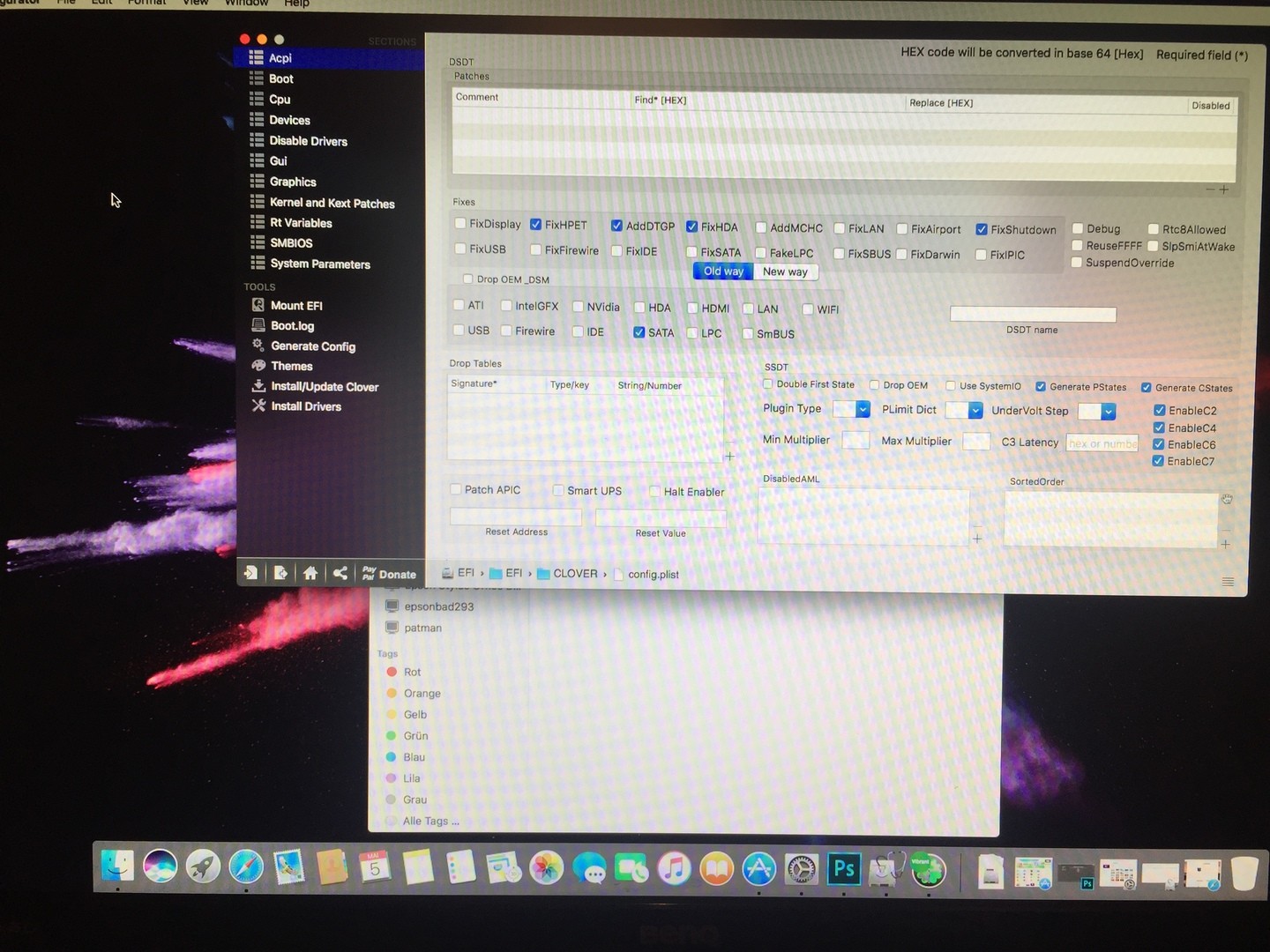 Hmm, da geht es aber um Mavericks 10.9.4 und nicht um 10.12.4 und der Bereich ACPI in Clover ist für mich genauso eine Verknüpfung wie Apple und BMW oder Audi und Android, dennoch verstehe ich deine Lösung bezogen auf das Problem nicht.