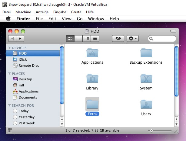 Die „Snow Leopard DVD.iso sollte jetzt in der Mitte erscheinen: