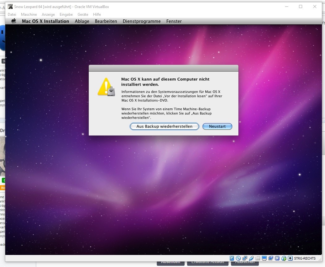Bei etwa 99% der Installation taucht diese Fehlermleldung auf: