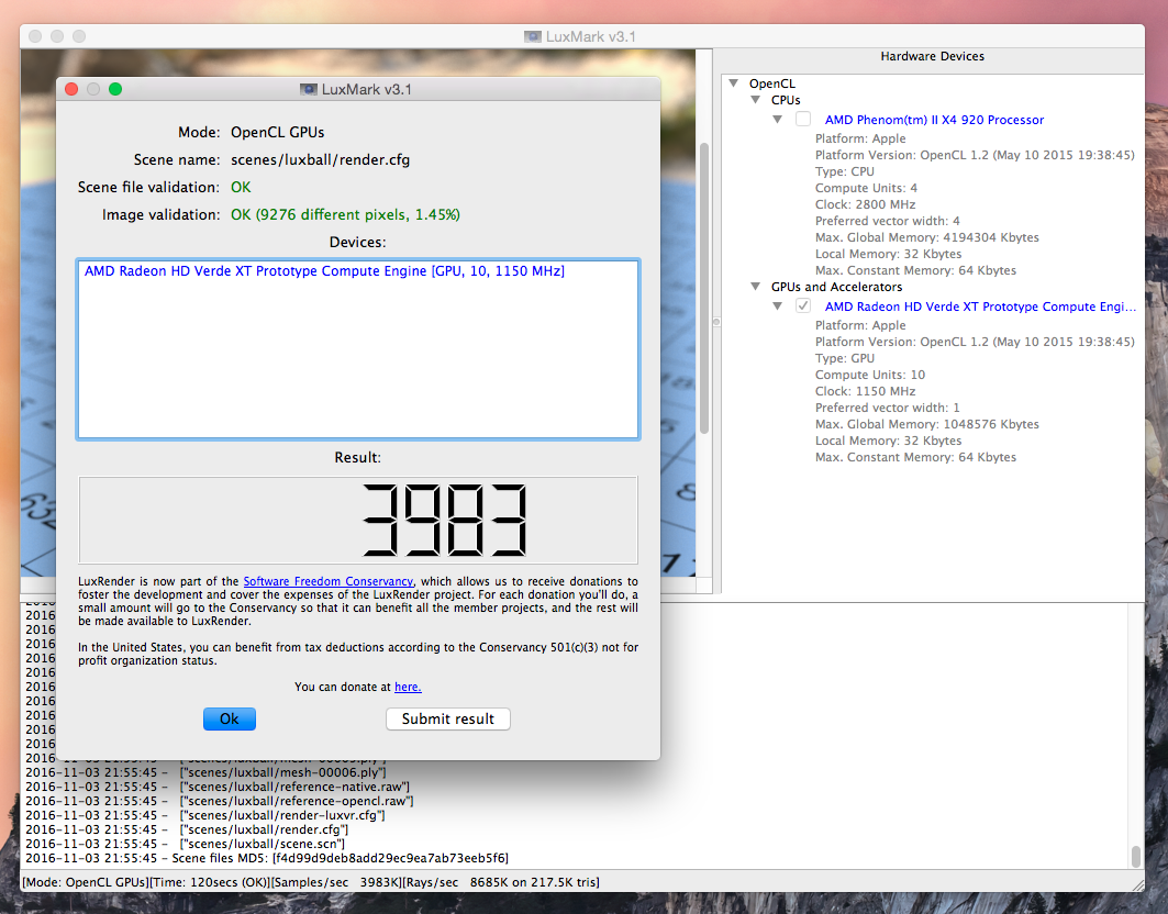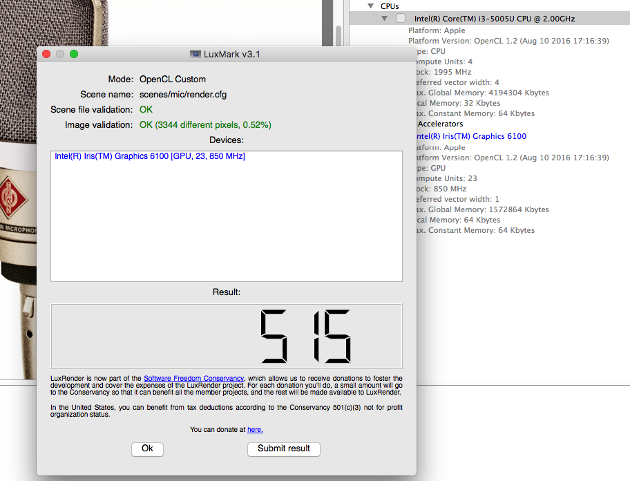 Ich würde dies gerne um den LuxMark OpenCL Benchmark (Version 3.1) erweitern.