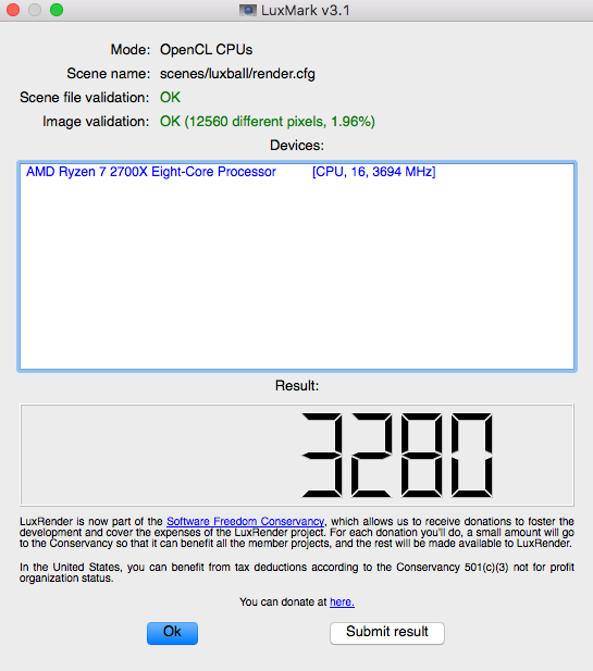 PS: Luxmark ist ja ein "Abfallprodukt" des Luxrender - ein Plugin für Raytraycing mit BLENDER. Da wird auch fleißig weiter entwicklet - zur Zeit 2.0RC1 fürs LuxCoreRender Plugin. Leider noch nicht für OS X (als fertig compiliertes Modul, nur Source). https://luxcorerender.org/download/Obs mal einen neuen Luxmark (4.0 ?) gibt, der diese neue 2.0 LuxCoreEngine auch nutzt bleibt abzuwarten.