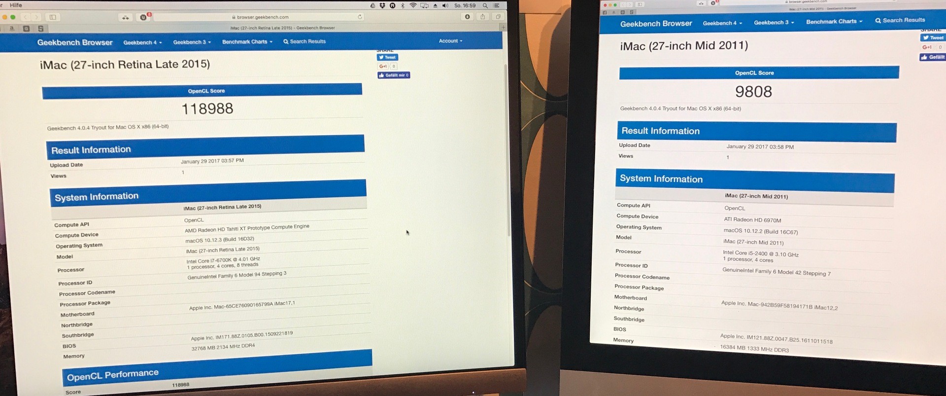 Ok, Ausgangsbasis ist mein 27" i5 iMac late 2012, welcher für 4K Videoschnitt (Final Cut Pro X) mittlerweile an seine Grenzen stösst. Nachdem mir gewünschte Apple Fertiggeräte (iMac 5K) einfach zu teuer sind, wollte ich es mal mit nem Hacki versuchen und bin über das Forum hier gestolpert ![]()