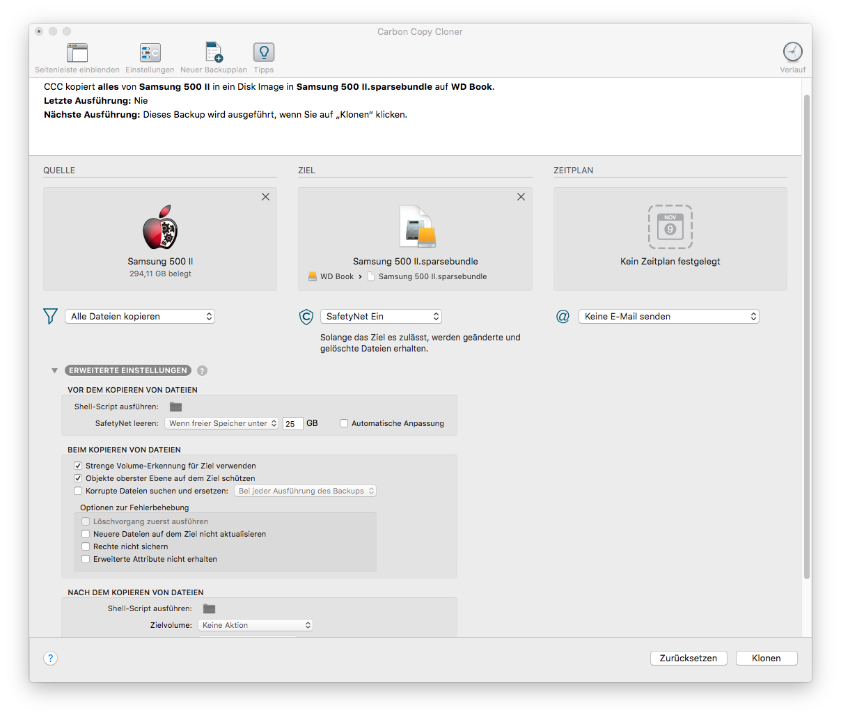 Mit dem Carbon Copy Cloner konnte ich mir beim weiteren Test auch genau wie bisher üblich einzelne Abschnitte startfähig kopieren. Drei Versuche, drei positive Ergebnisse, egal, ob FDP oder CCC_5.