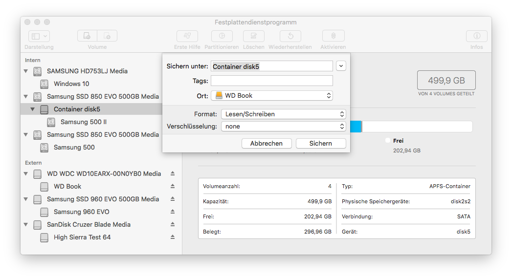 jedenfalls zumindest in der GUI noch nicht ein Image von einem APFS Volume zu erstellen
