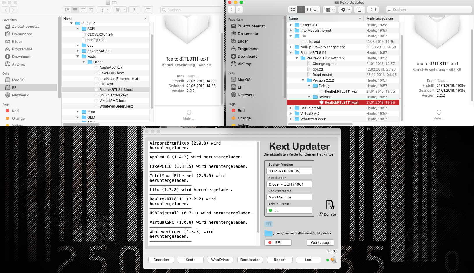 Hintergrund meiner Frage ist, daß ich oft EFI von Usern anschaue und diese unkompliziert aktualisieren möchte. Die Versionen der Kexte und des Clover sind für mich ja nicht erkennbar. Oder gibt es andere Möglichkeiten, die ich noch nicht kenne?