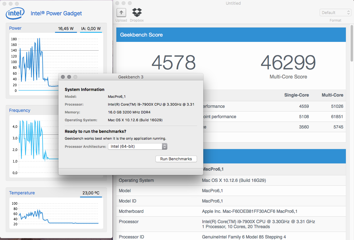 Alles auf Automatik, nix optimiert. Multiplikator sitzt fest auf 40, allerdings sehe ich im Intel Power Gadget, dass der regelmäßig auf 4,5 GHz schnellt.