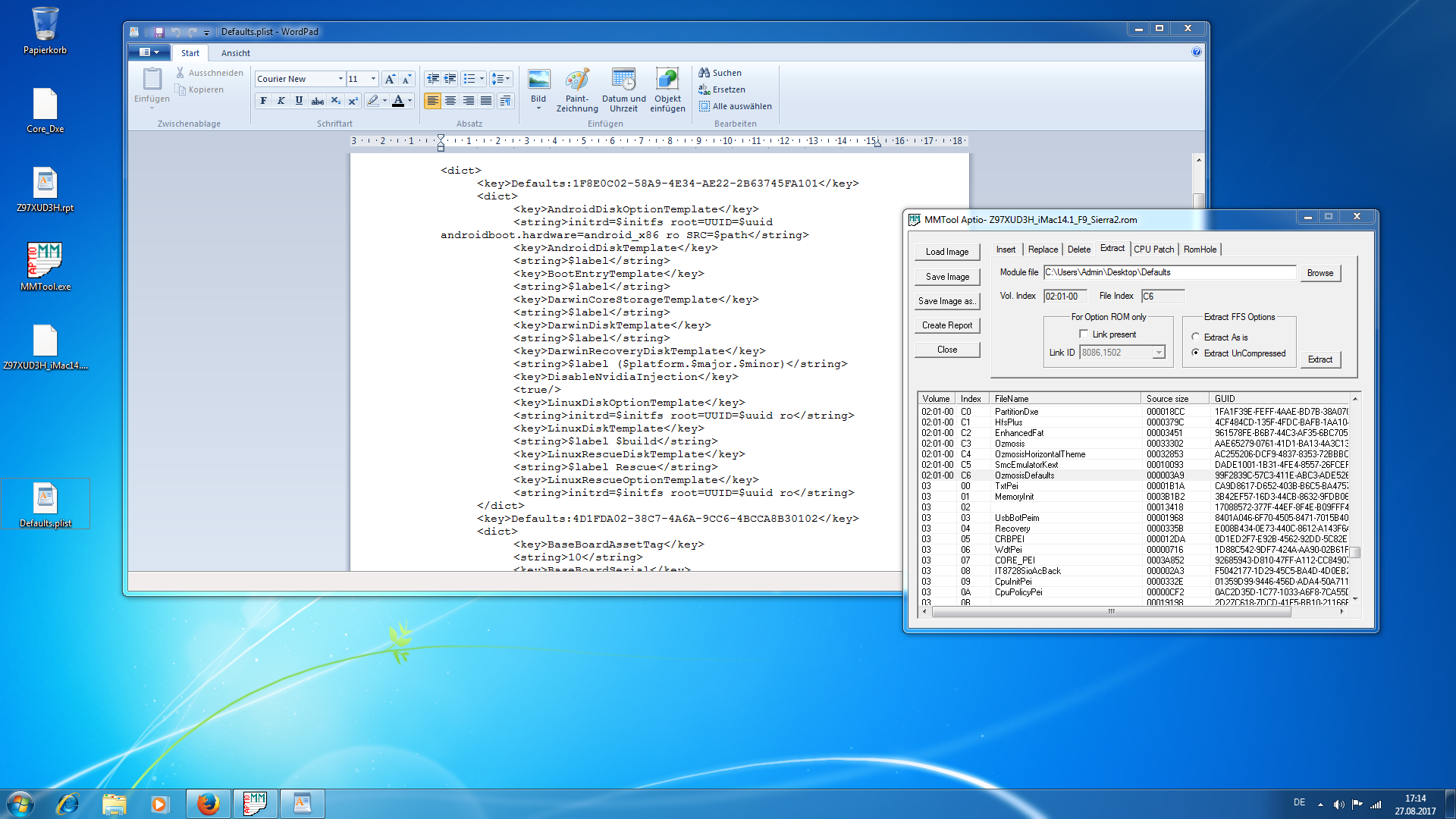 Die .ffs kann man extrahieren als unkomprimiert und dann einfach nach .plist oder .kext umbenennen, ich finde das kleine Ozm Tool besser als UEFI Tool, geht aber auch damit (wenn man es im Baum findet).
