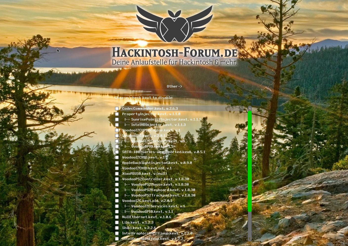 Nun geht es aber auch einfacher. Clover bringt seit r4204 selbst sowas mit Bordmitteln mit Kext Inject Management