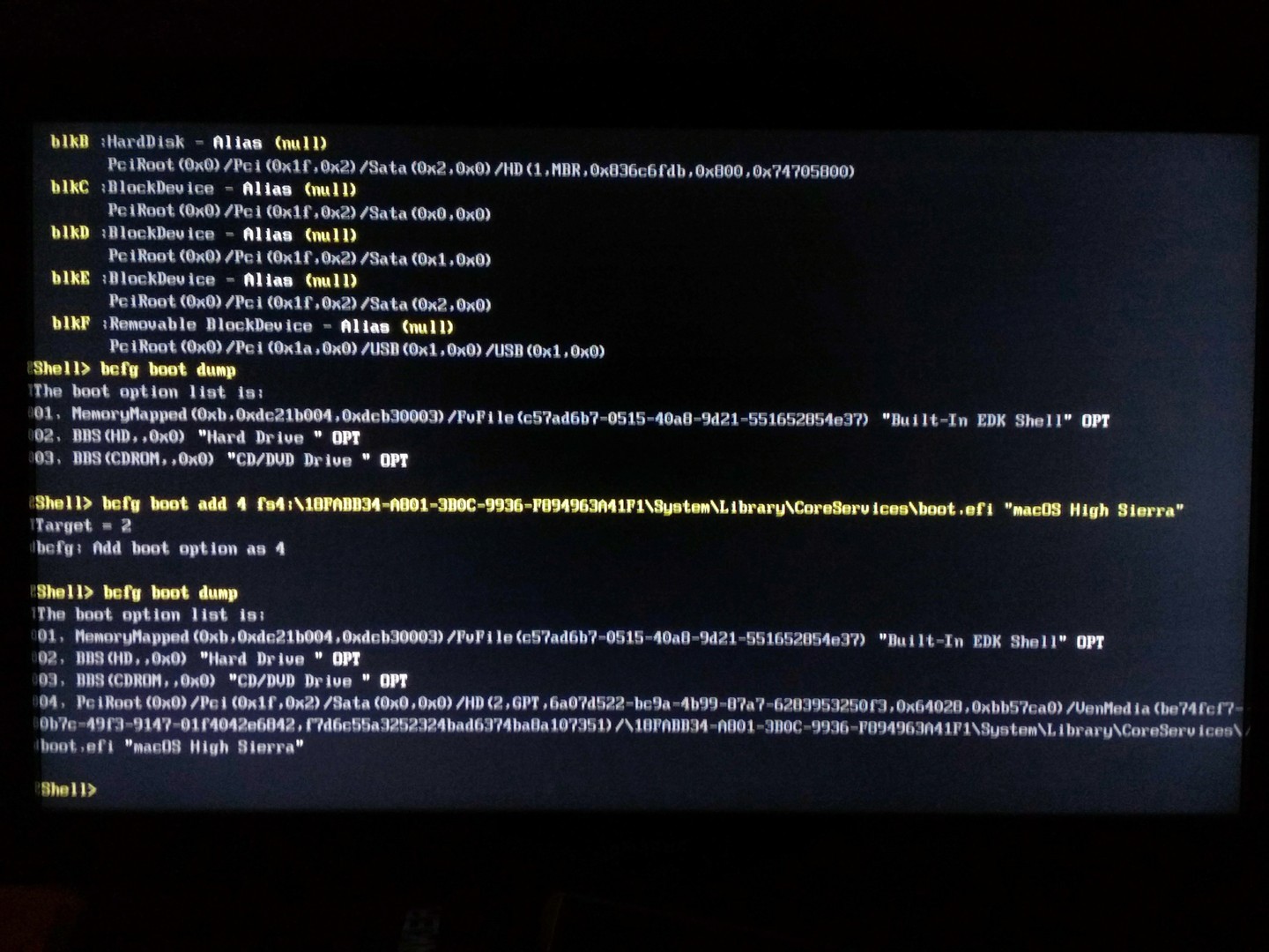 Wie auch immer ich habe Dir hier mal noch einen ROM mit der F10f Version erstellt (ist die selbe Bios Version die ich auch verwende) zwar wirst Du auch hier den Eintrag über die Shell setzen müssen aber zumindest sollte er dann auch bestehen bleiben. Ich habe parallel mal bei mir getestet und die F10f ist tatsächlich die einzige Bios Version in der die Einträge erhalten bleiben. Bitte mal damit testen, danke.