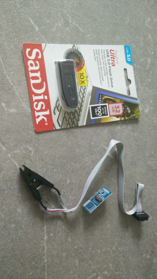 • Auf Grund von Lieferengpass des Anbieters und der daraus folgenden Verzögerung beim Eintreffen des "SOIC8 SOP8 Flash Chip IC Test Clips Socket Adpter BIOS/24/25/93 Programmer", mache ich hier erst mal dicht, bis das Teil auf meinem Tisch liegt...