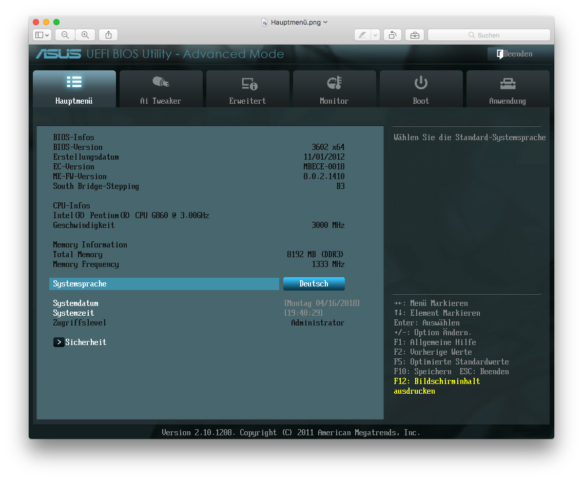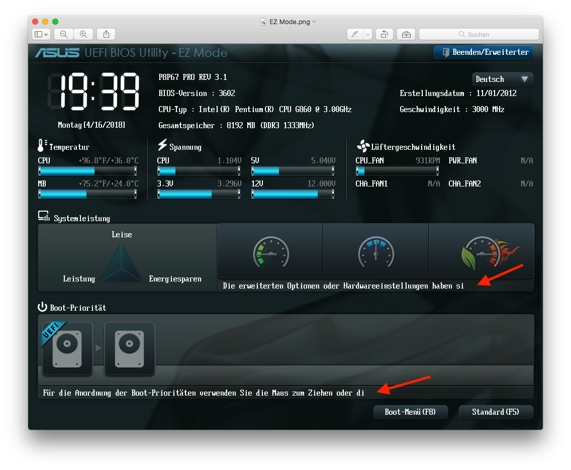 @Stahlwolf hier mal ein Screenshot zu deinem ASUS P8P67 Pro Rev 3.1 und so viel sei gesagt es lebt (wieder), Windows, Linux und macOS laufen einwandfrei.
