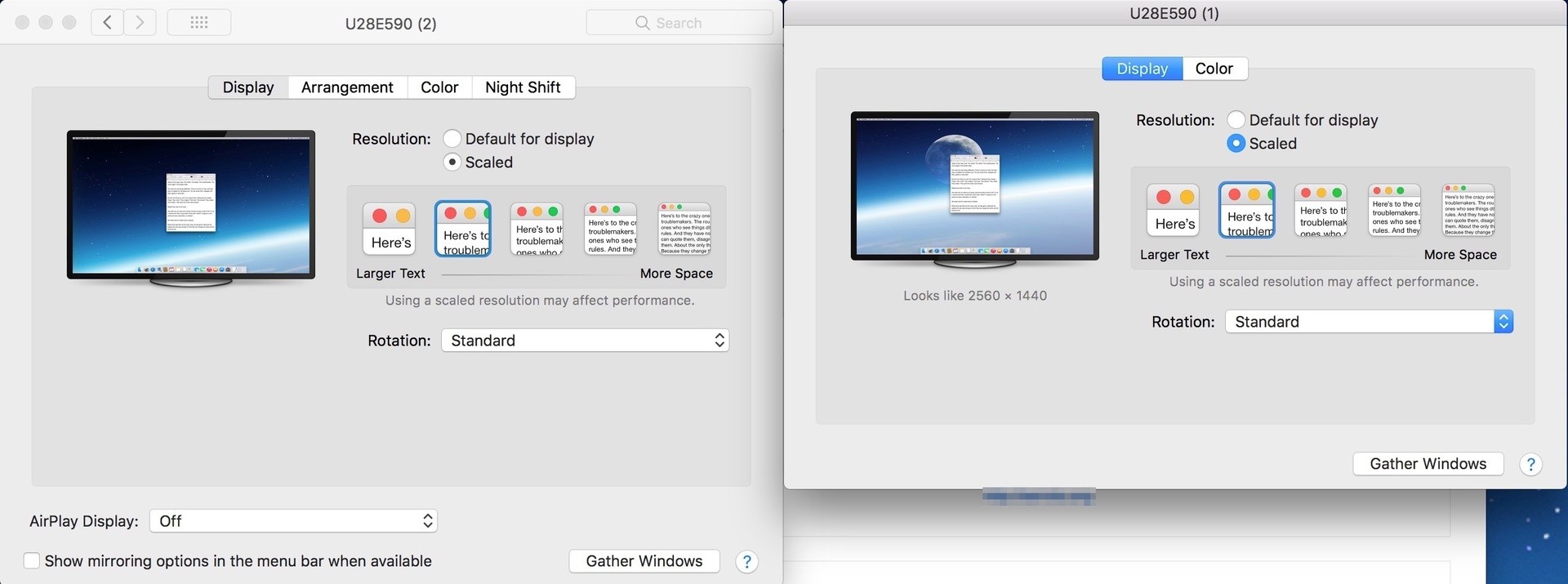 • Dann geh das nächste Mal in den Systemeinstellungen --->Monitor--->Skaliert und du siehst dann das ein größerer Text ausgewählt wurde und steht "sieht aus wie 1080p" aber dafür die Schärfe von 5k hat nehme ich an. Nun ob das ein großer Unterschied zu 4k UHD ist weiß ich nicht, der 5k LG von Apple ist definitiv überteuert. Natürlich wird das Bild erst durch die Hohe Auflösung scharf, "sieht aus wie" bedeutet nur das es vergrößert wurde aber die native Auflösung sei es 4k oder 5k verwendet wird.