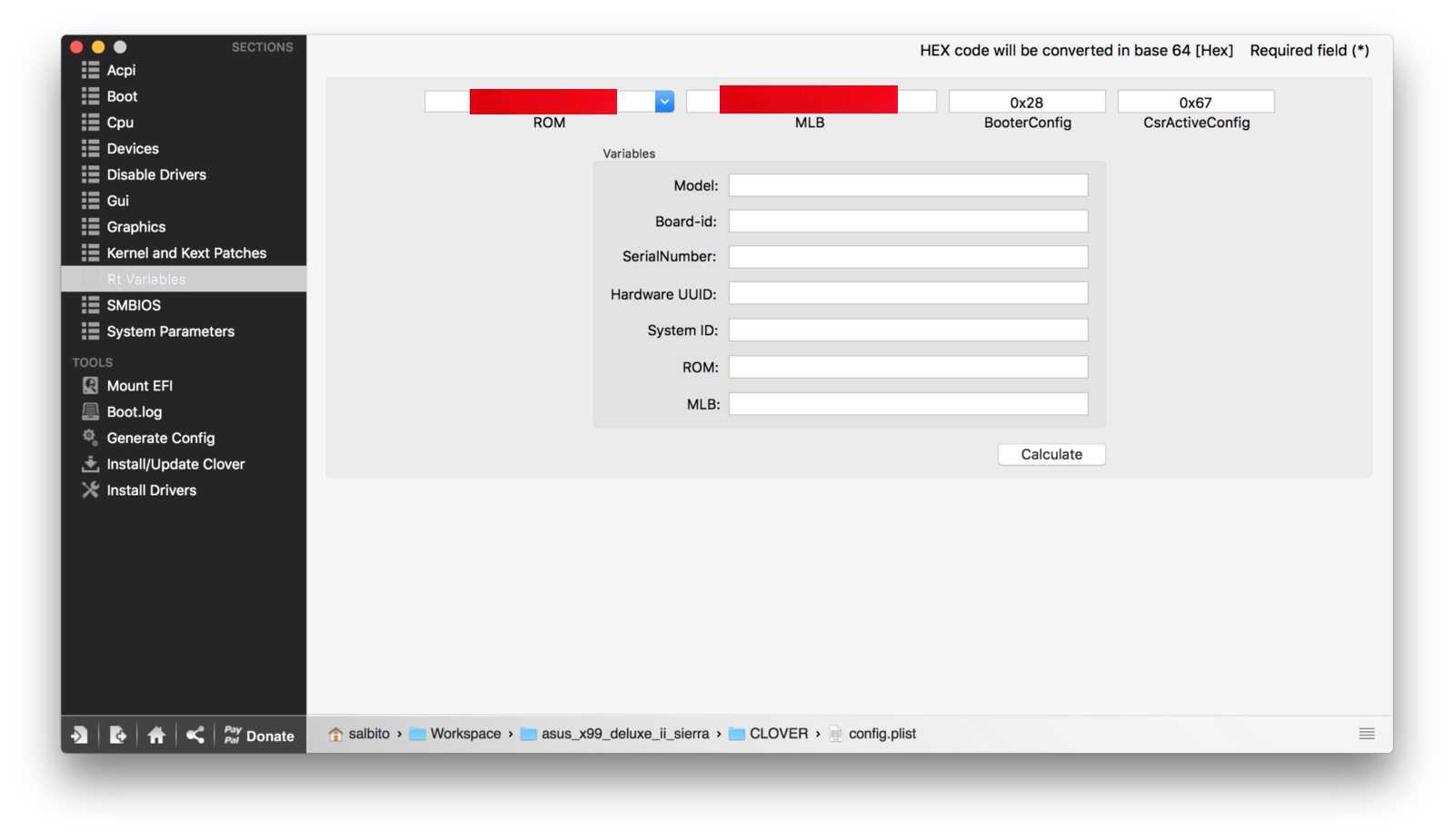 ROM und Cusum UUID kannst du dir mit dem Clover Configurator eigene Werte erzeugen lasen.