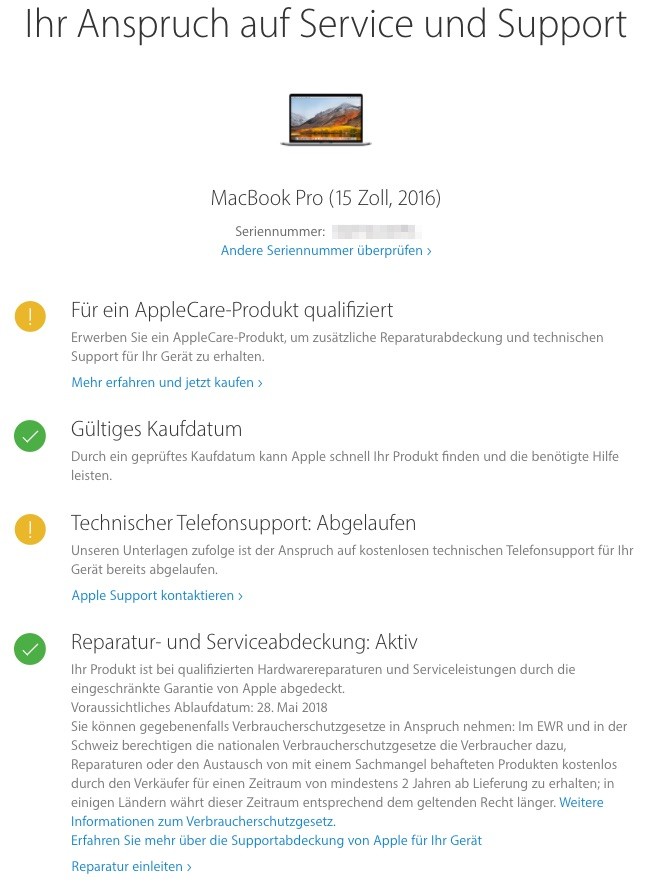 wie vielleicht schon den einen oder anderen aufgefallen ist, gibt es die Webseite zum Überprüfen der Seriennummern (http://checkcoverage.apple.com/</a>) nicht mehr.