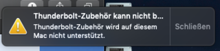 Klemme ich z.B. das MacBook Pro dran so fängt es an zu laden !! Kleme ich einen USB Verteiler an das Thunderbolt Kabel so erhalte ich die auf dem Bild genannte Mitteilung.