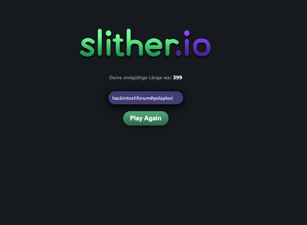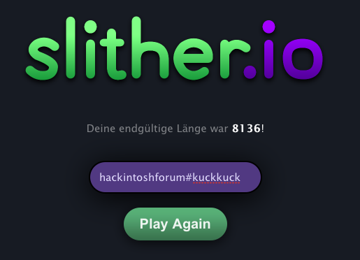 Wir sollten eine slither.io Challenge machen. Wer Lust hat kann sich am Samstag gerne beteiligen. Einfach online mit