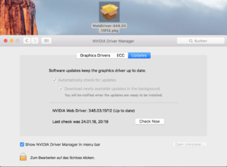 • Auf dem El Capitan keine Probleme. Allerdings noch kein Treiber für Nvidia. Webdriver All Versions funktioniert nicht, da NVDAStartupWeb.kext nicht gefunden werden kann. Versuche mit webdriver.sh.