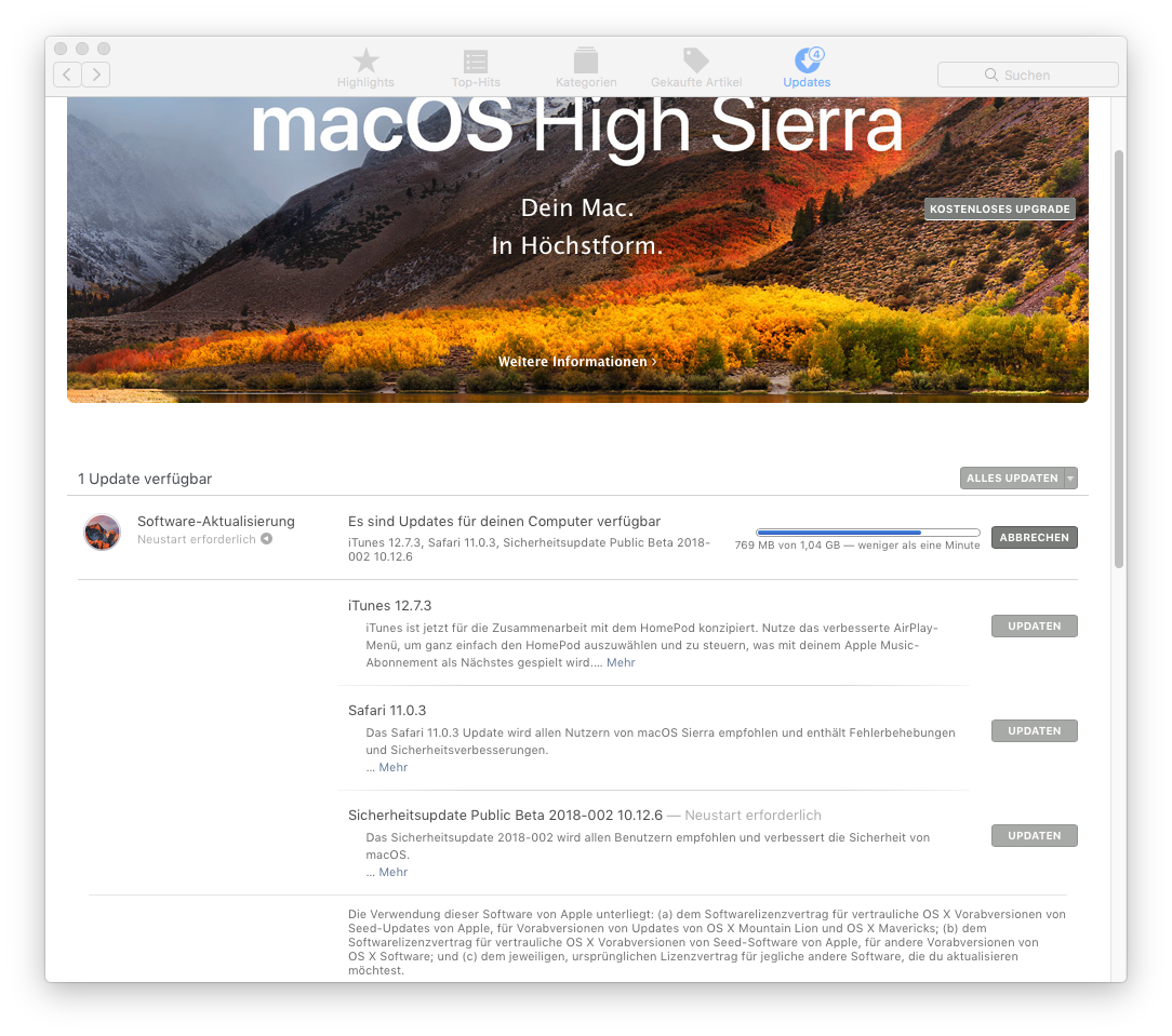 Vor größeren Updates gilt es natürlich auch, sich zu erkundigen, ob die anderen Programme damit dann weiter laufen, aber solche Updates, wie von macOS Sierra auf macOS High Sierra, stehen hier jetzt nicht im Vordergrund, es gibt ja viel mehr kleine Updates. Auch wenn der Unterschied in der Bearbeitung eigentlich nur in der notwendigen Sorgfalt besteht.